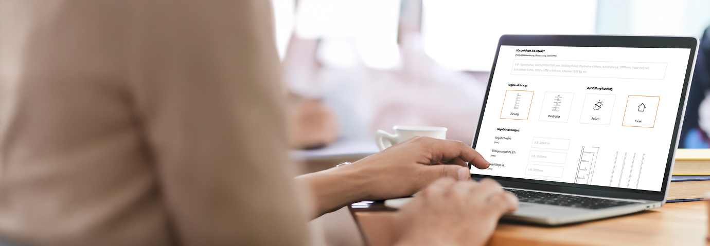 Bringen Sie Ihr Lager auf das nächste Level – individuell, effizient und exakt auf Ihre Anforderungen abgestimmt. In nur wenigen Schritten konfigurieren Sie Ihr Wunschregal – von den Maßen bis zur Traglast, exakt nach Ihrem Bedarf.