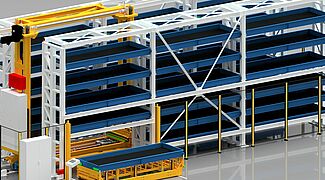 - Effiziente Ein- und Auslagerung durch integriertes Regalbediengerät (RBG)