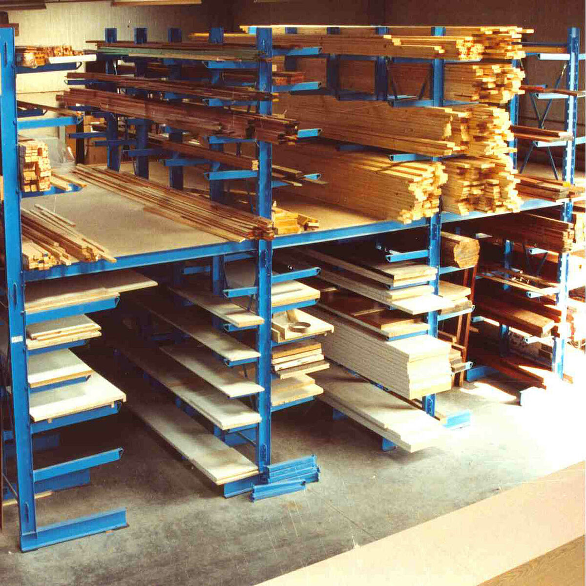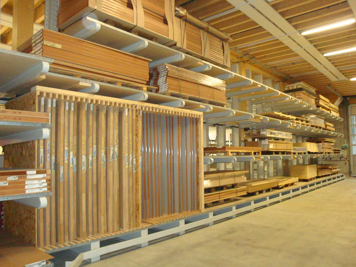 Kragarm- und Palettenregale für Span- und Arbeitsplatten.