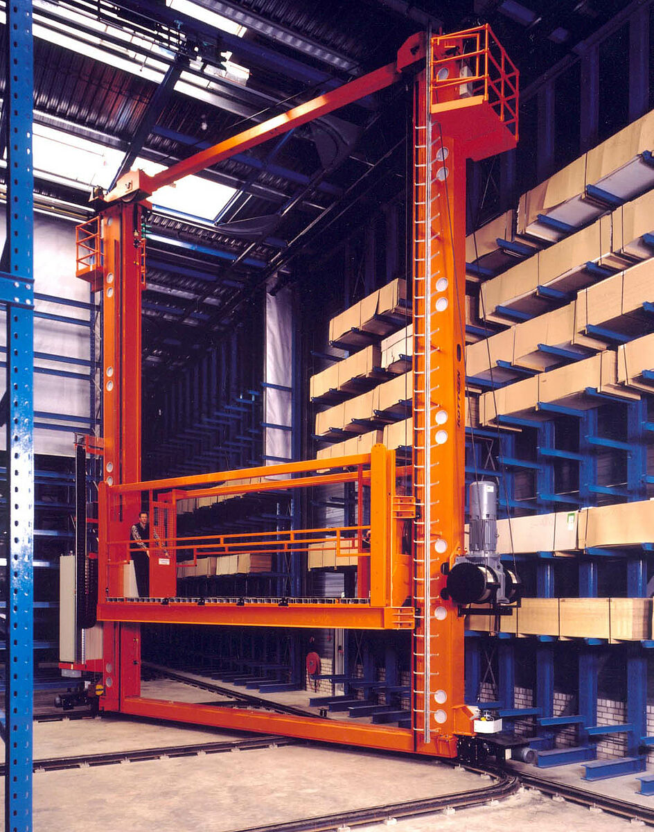 Lageroptimierung durch Teil- und Vollautomatisierung von Ein- und Auslagervorgängen. Nach dem Prinzip „Ware zum Mann“ erhöht sich die Leistungsfähigkeit bei hohen Kommissionierleistungen. Je nach Anforderung können ganze Pakete oder einzelne Platten entnommen und zur Übergabestation befördert werden.