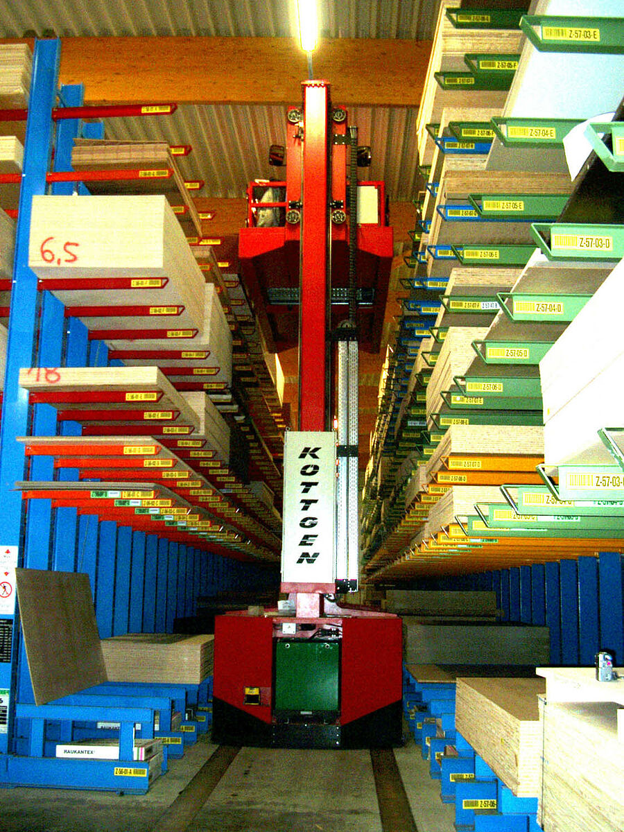 In der Möbel- und Holzindustrie ist eine spezielle, auf die Branche zugeschnittene, Lagertechnik ein wichtiges Merkmal für eine wirtschaftliche Lagerhaltung: Paletten und Transportcollis im Palettenregal-Silo und Vormaterial, Holz und Platten im Kragarmregal-Silo. Bedingt durch die produzierten Waren und eingesetzten Werkstoffe müssen hier voluminöse Güter platzsparend und kommissionierfreundlich ein- und ausgelagert werden können.