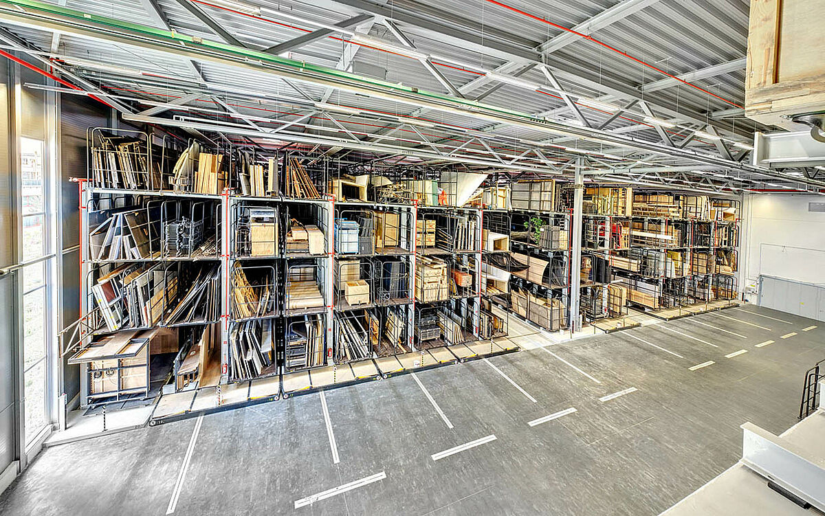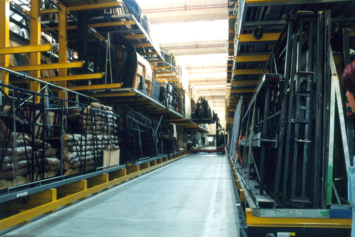 Für die Herstellung und Reparatur von Kulissen wird eine Vielzahl an Materialien mit unterschiedlichen Abmessungen und Gewichten benötigt. Die robusten Vertikalregale garantieren eine hohe Tragfähigkeit – insbesondere von schweren, unhandlichen und sperrigen Objekte - sowie ein schnelles Handling in der Werkstatt.